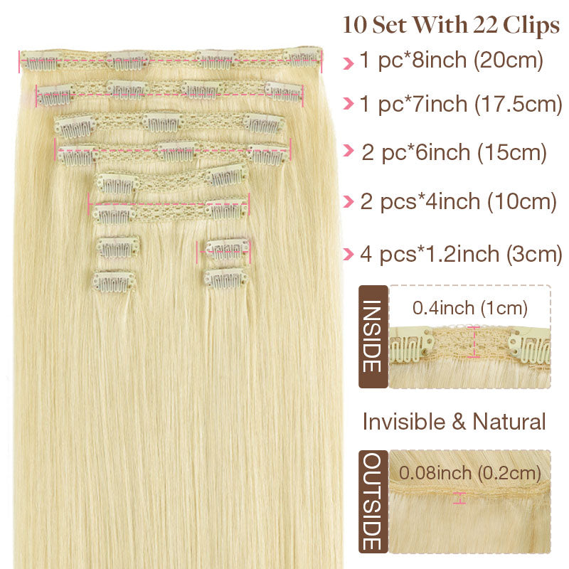 Compared to classic clip in hair extensions, our upgraded double drawn clip ins is fuller, softer, with more pieces and last longer.
