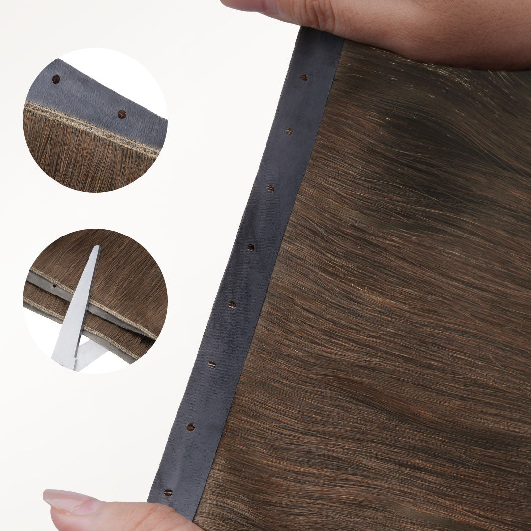 Butterfly Weft :A double-layer hair extension with hidden holes, allowing natural hair to be pulled through and secured with micro beads for a flat, seamless, and invisible look.