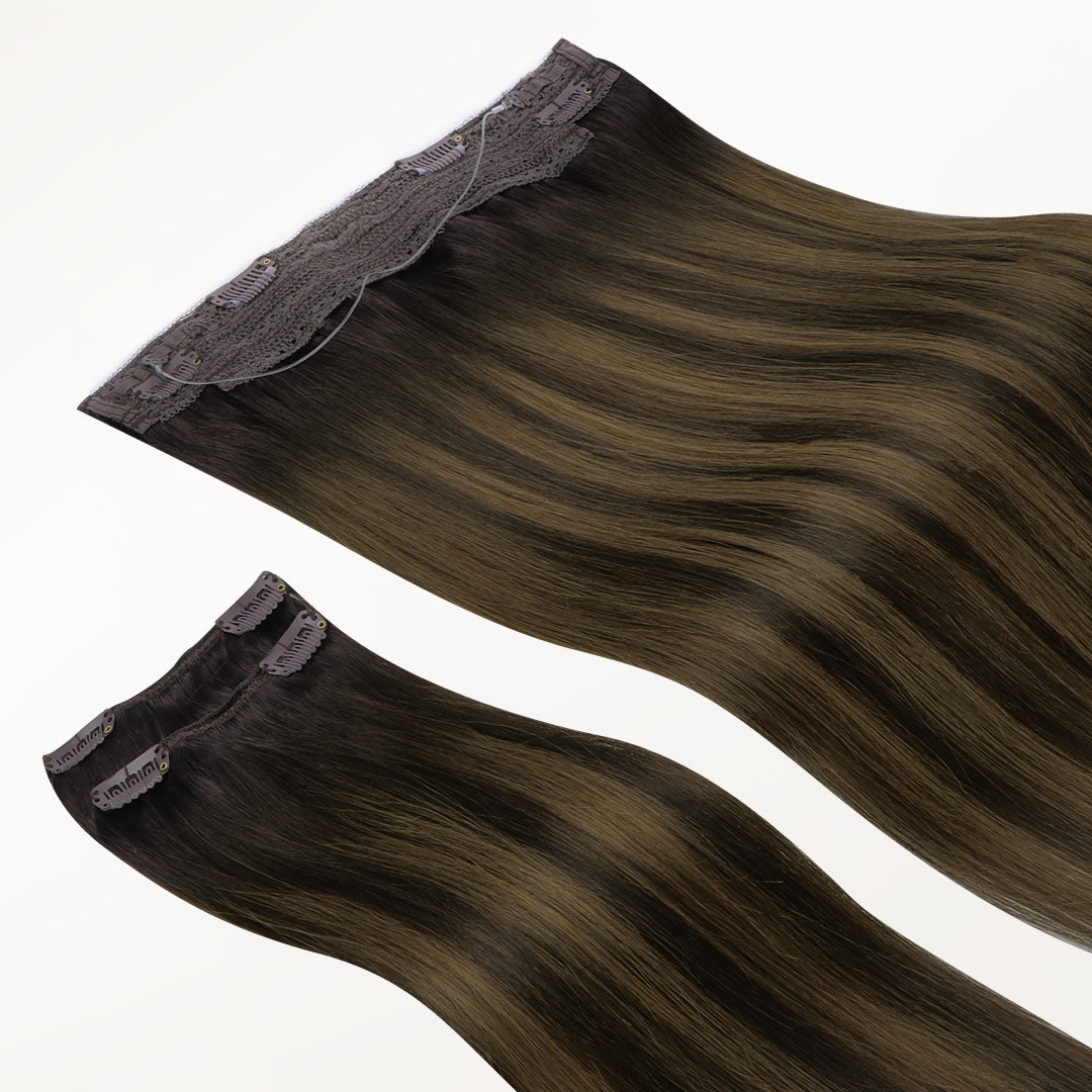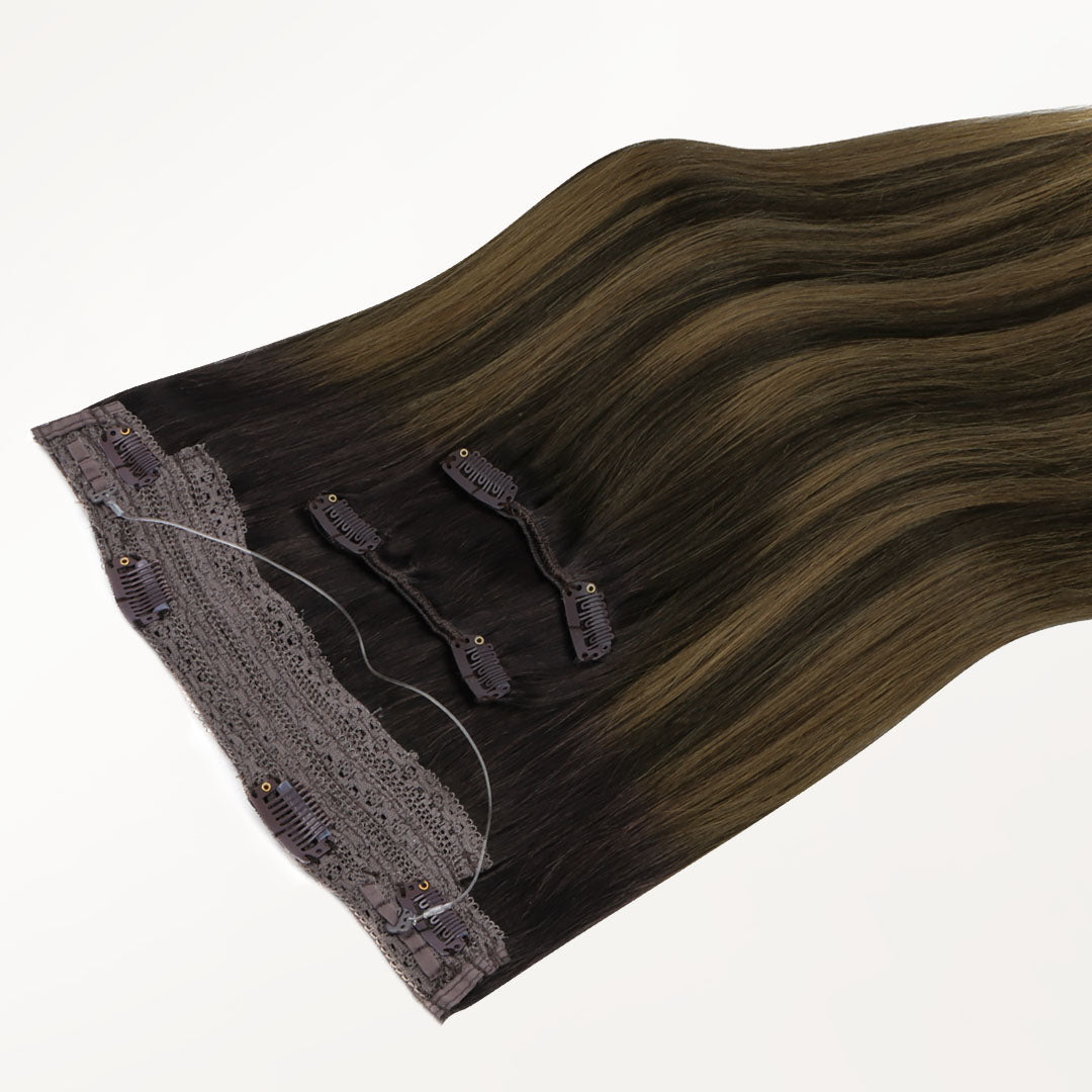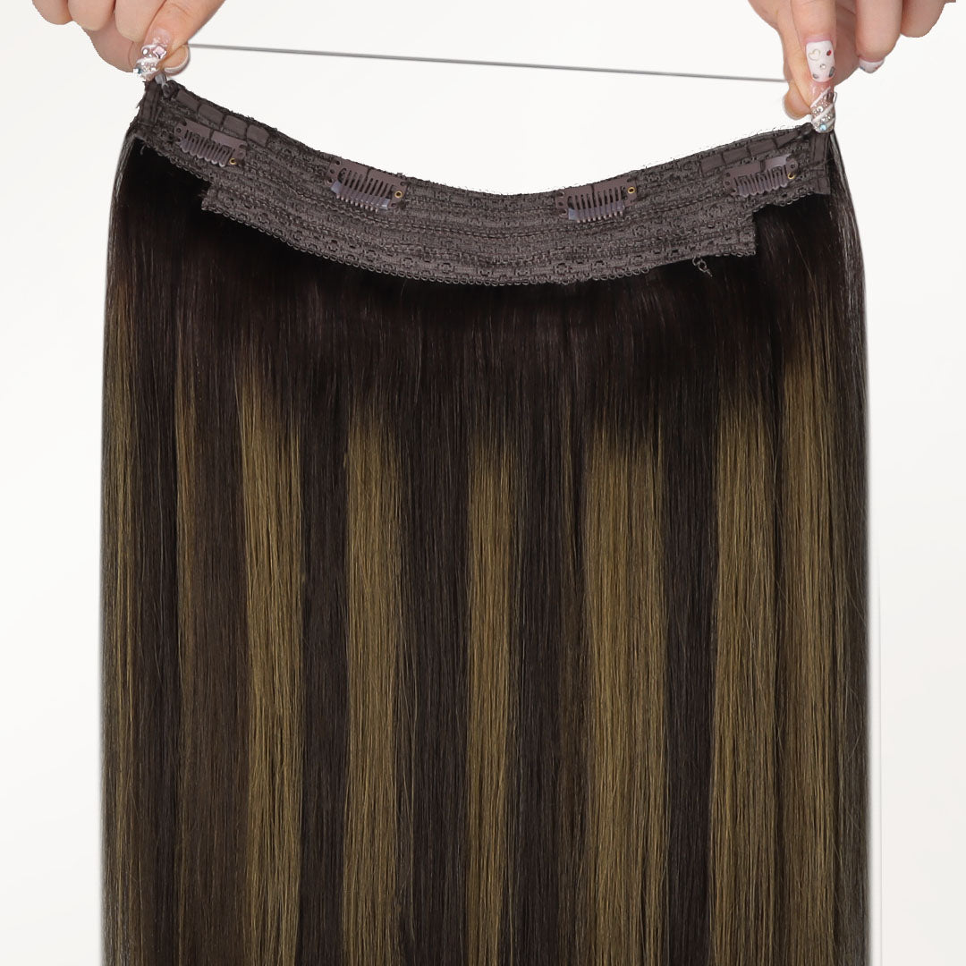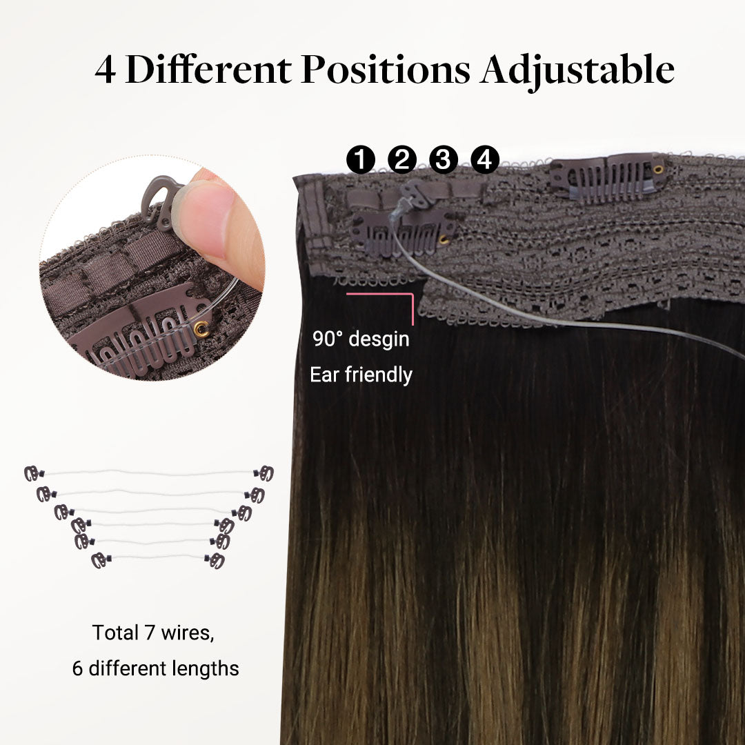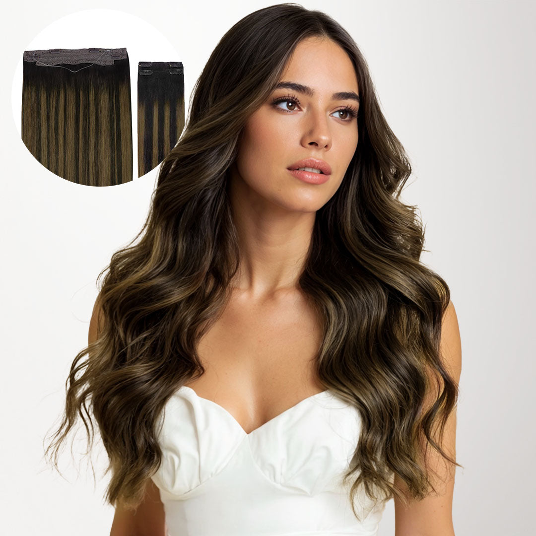 A single piece with an invisible wire. Super lightweight, no clips, easy to wear—perfect for beginners and fine hair.