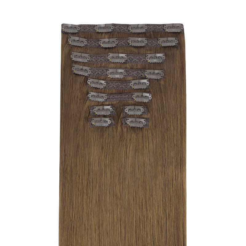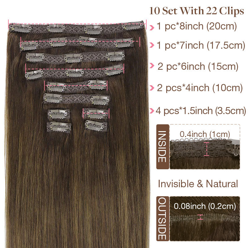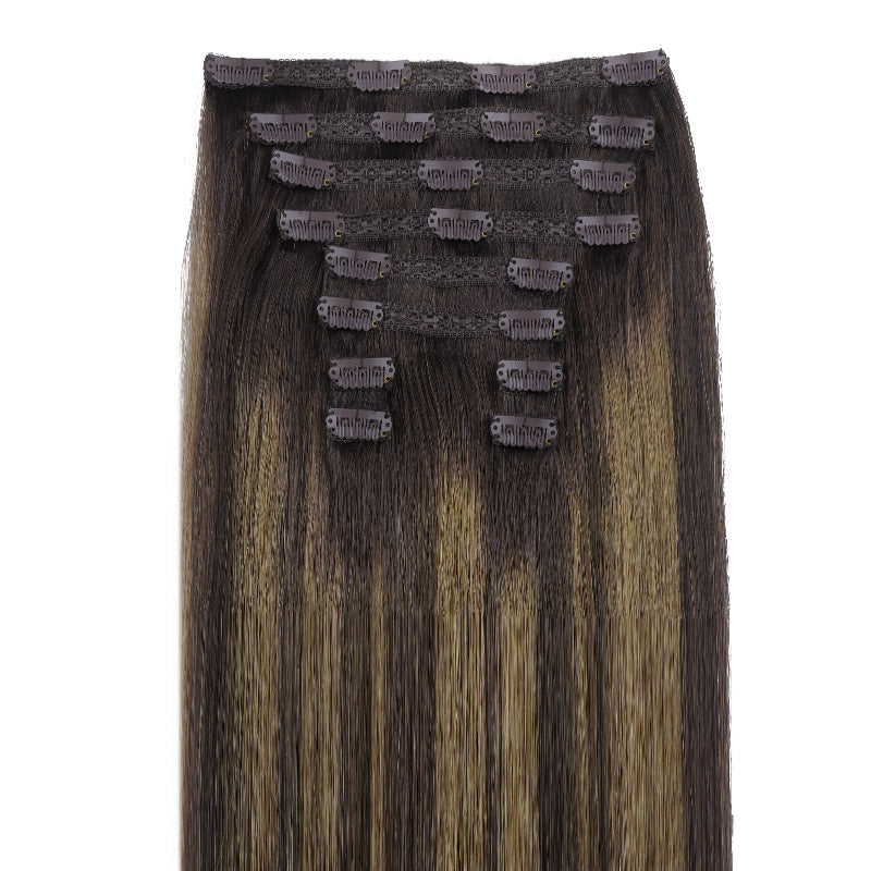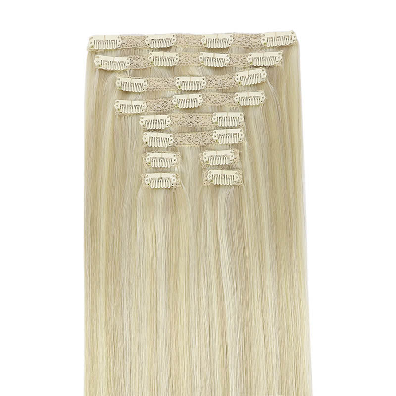 Compared to classic clip in hair extensions, our upgraded double drawn clip ins is fuller, softer, with more pieces and last longer.