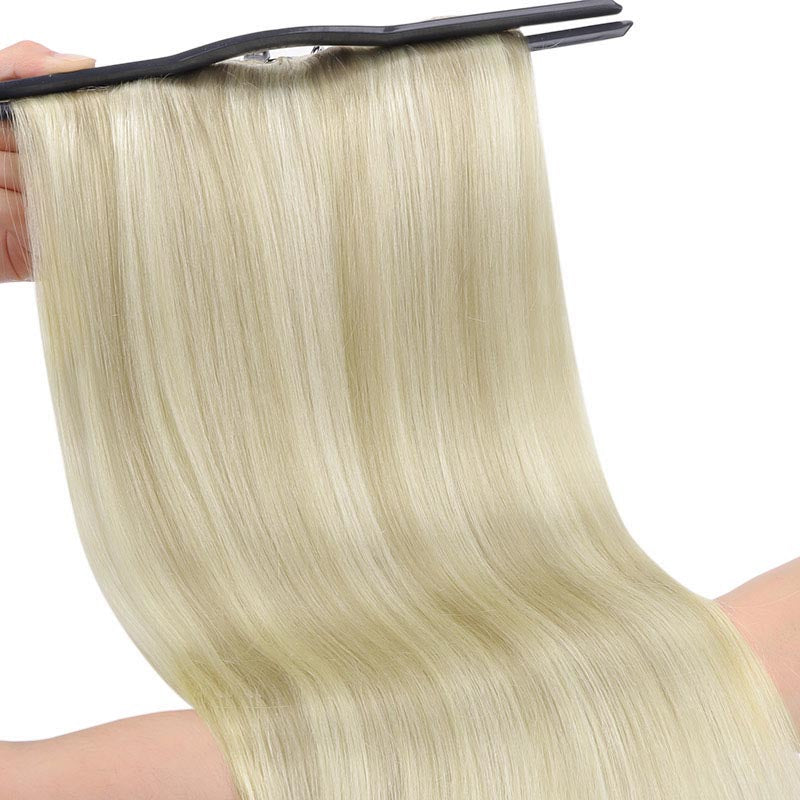 Seamless clip-in extensions are designed to have a smooth, seamless appearance when applied. They are made with a weft that is thinner and more flexible, which allows for a more natural blend with your own hair.