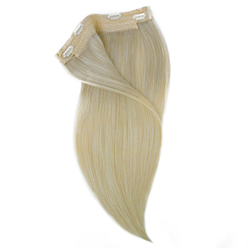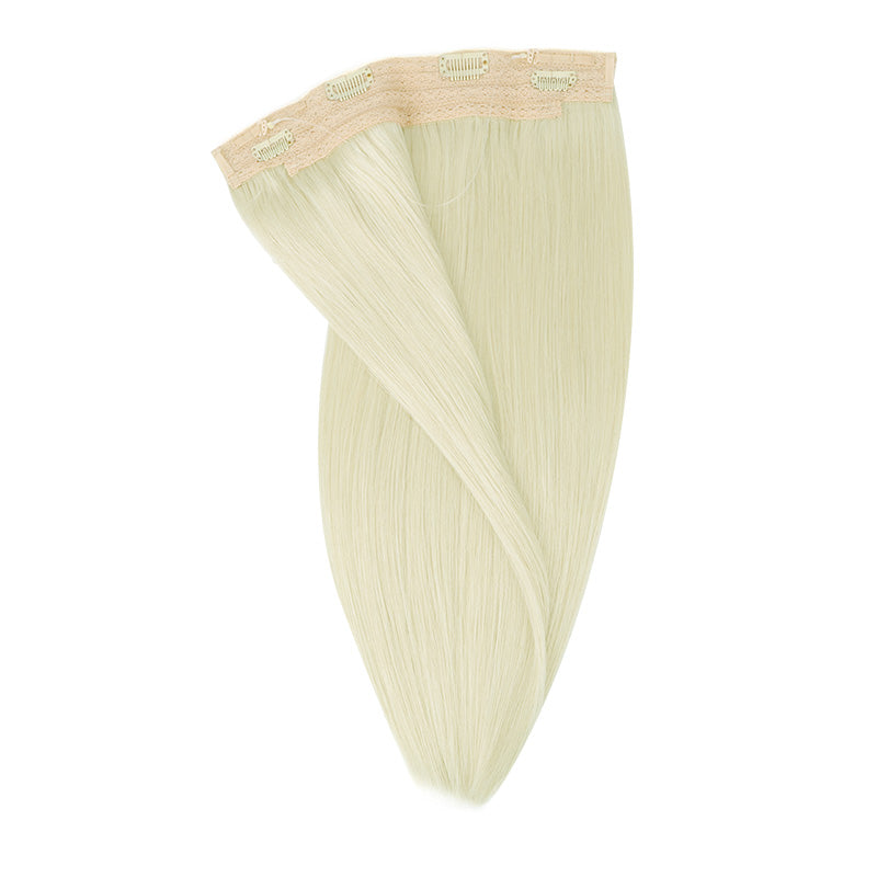 A single piece with an invisible wire. Super lightweight, no clips, easy to wear—perfect for beginners and fine hair.