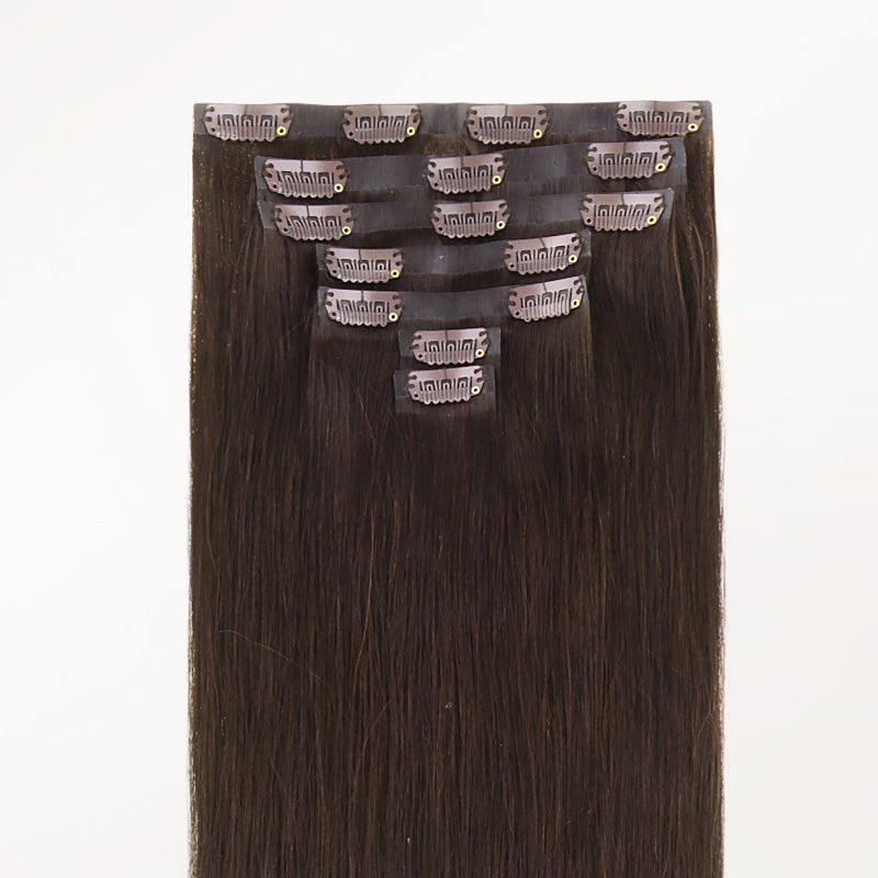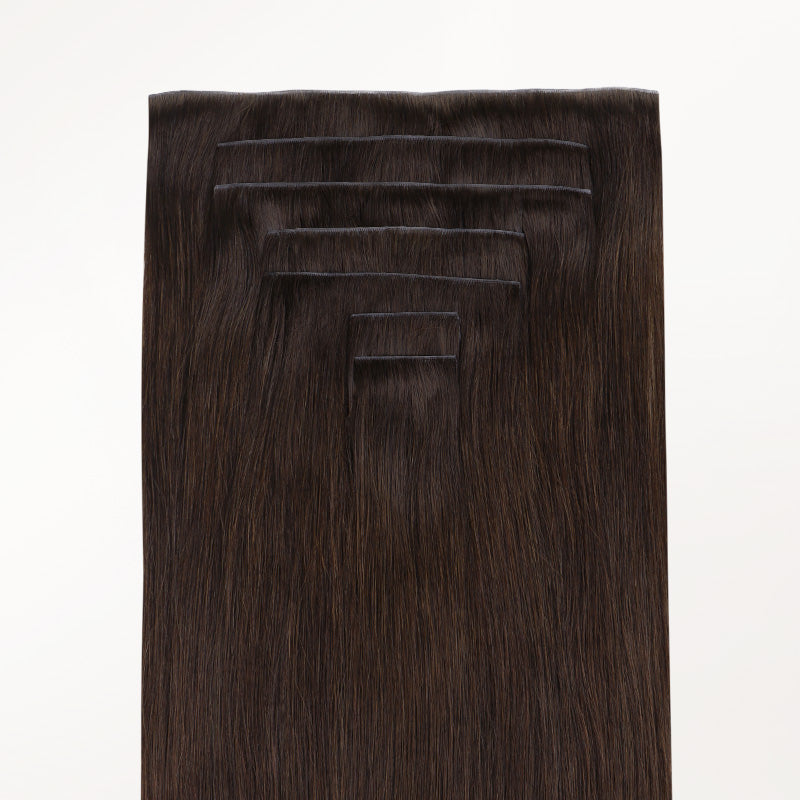 Clip-in hair extensions are the easiest way to get longer, fuller hair—instantly! Each set comes with clips already sewn onto the wefts, so you can apply them yourself at home in just minutes—no salon, tools, or glue needed.They attach with secure, damage-free clips and can be taken in and out whenever you like. It’s the perfect choice if you want to switch up your look without any long-term commitment.Made with 100% Remy human hair, our clip-ins blend seamlessly with your natural hair and can be styled, curled, or straightened just like your own.
