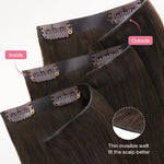 • Seamless Clip-Ins: Made with a flexible, silicone base that lies flat against the scalp. Great for everyday wear with a comfortable, natural finish.