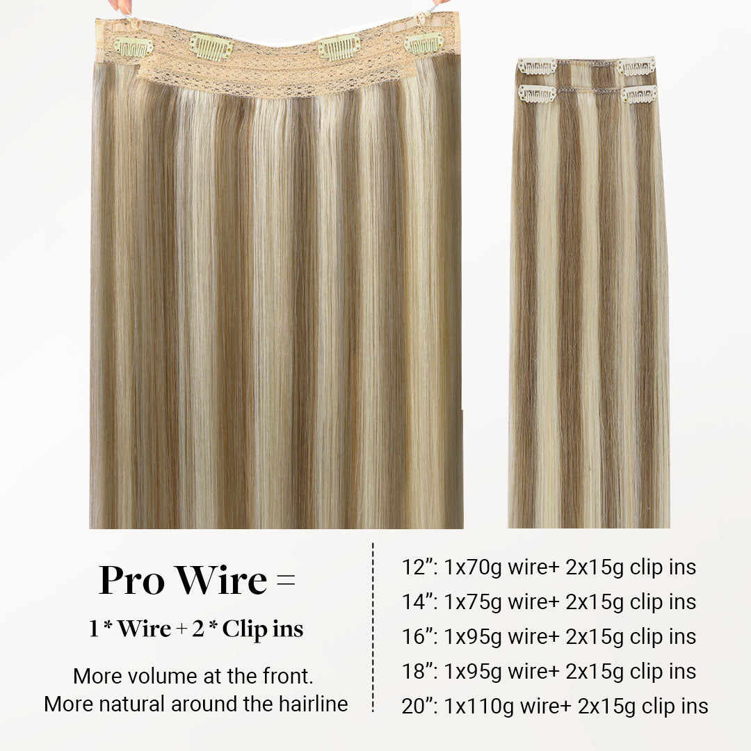 Pro Wire extensions deliver instant fullness and natural-looking volume, with extra clip-ins for seamless blending around your hairline—perfect for a flawless, versatile look without commitment.