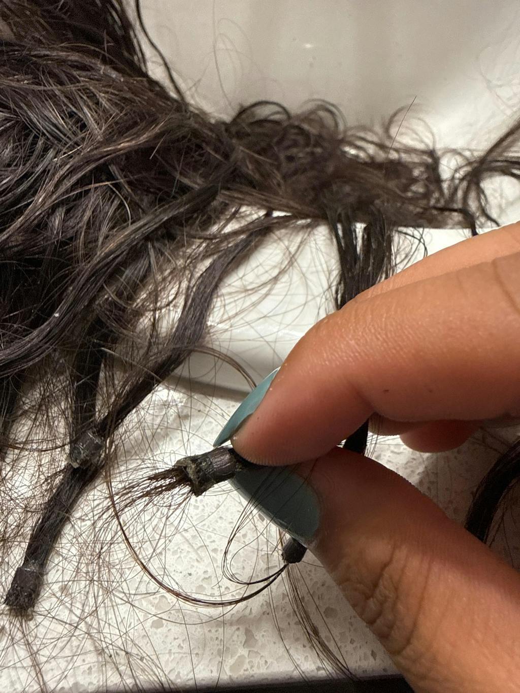 The beads are slipping down which is exposing a very sticky residue and it sticks in my hair, says they are reusable but half of them half fallen apart after 1 install