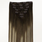 Clip-in hair extensions are the easiest way to get longer, fuller hair—instantly! Each set comes with clips already sewn onto the wefts, so you can apply them yourself at home in just minutes—no salon, tools, or glue needed.They attach with secure, damage-free clips and can be taken in and out whenever you like. It’s the perfect choice if you want to switch up your look without any long-term commitment.Made with 100% Remy human hair, our clip-ins blend seamlessly with your natural hair and can be styled, curled, or straightened just like your own.