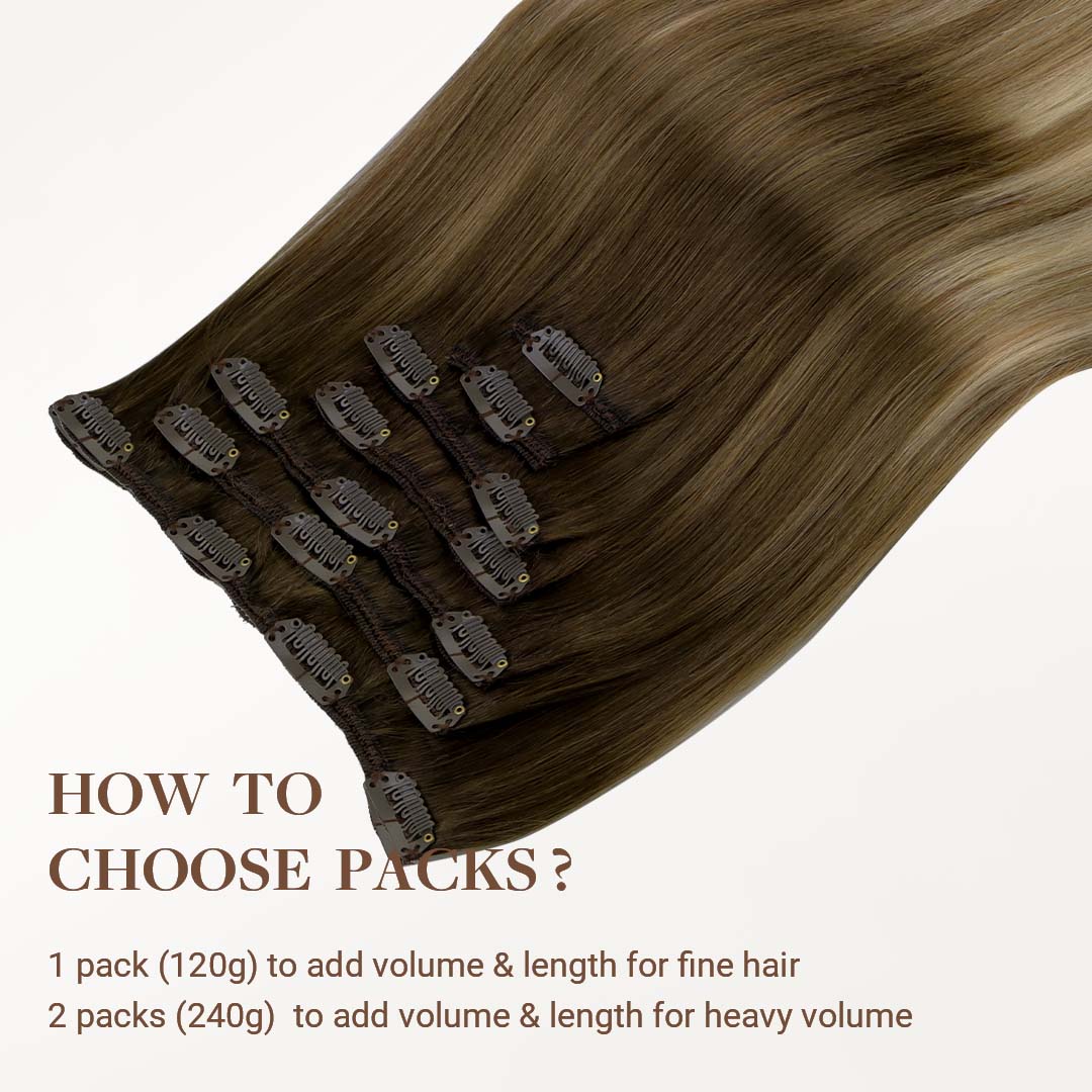 Clip-in hair extensions are the easiest way to get longer, fuller hair—instantly! Each set comes with clips already sewn onto the wefts, so you can apply them yourself at home in just minutes—no salon, tools, or glue needed.They attach with secure, damage-free clips and can be taken in and out whenever you like. It’s the perfect choice if you want to switch up your look without any long-term commitment.Made with 100% Remy human hair, our clip-ins blend seamlessly with your natural hair and can be styled, curled, or straightened just like your own.
