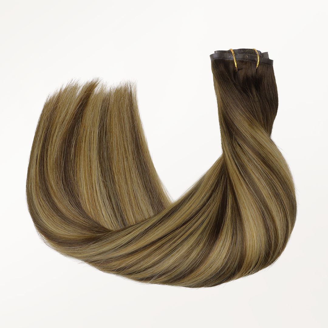 Karamellblondes Balayage (4/27/4) nahtlose Clip-Ins