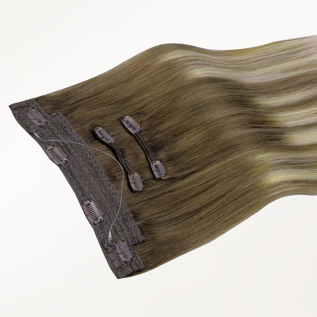 A single piece with an invisible wire. Super lightweight, no clips, easy to wear—perfect for beginners and fine hair.