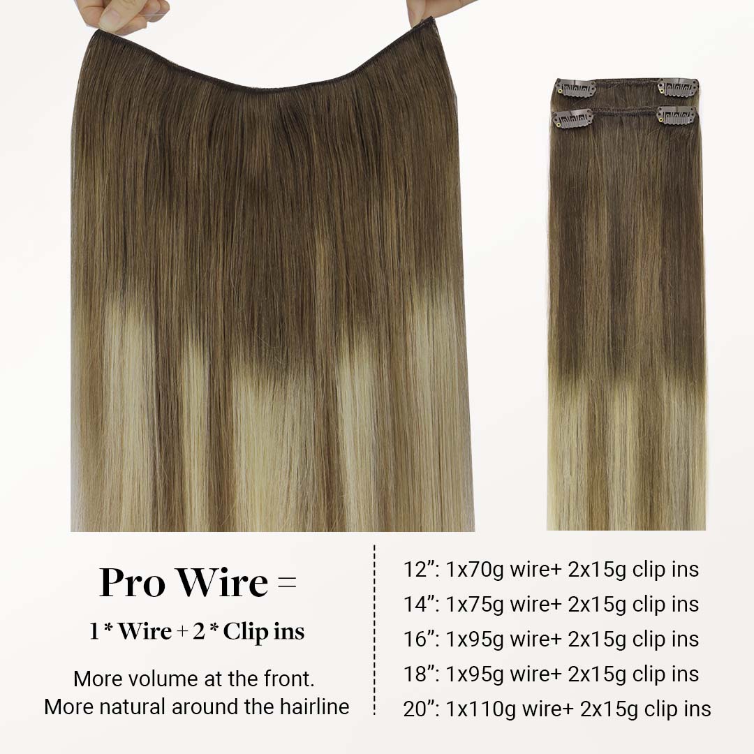 Pro Wire extensions deliver instant fullness and natural-looking volume, with extra clip-ins for seamless blending around your hairline—perfect for a flawless, versatile look without commitment.