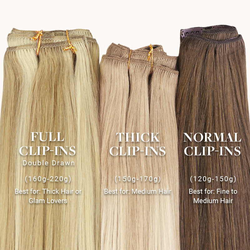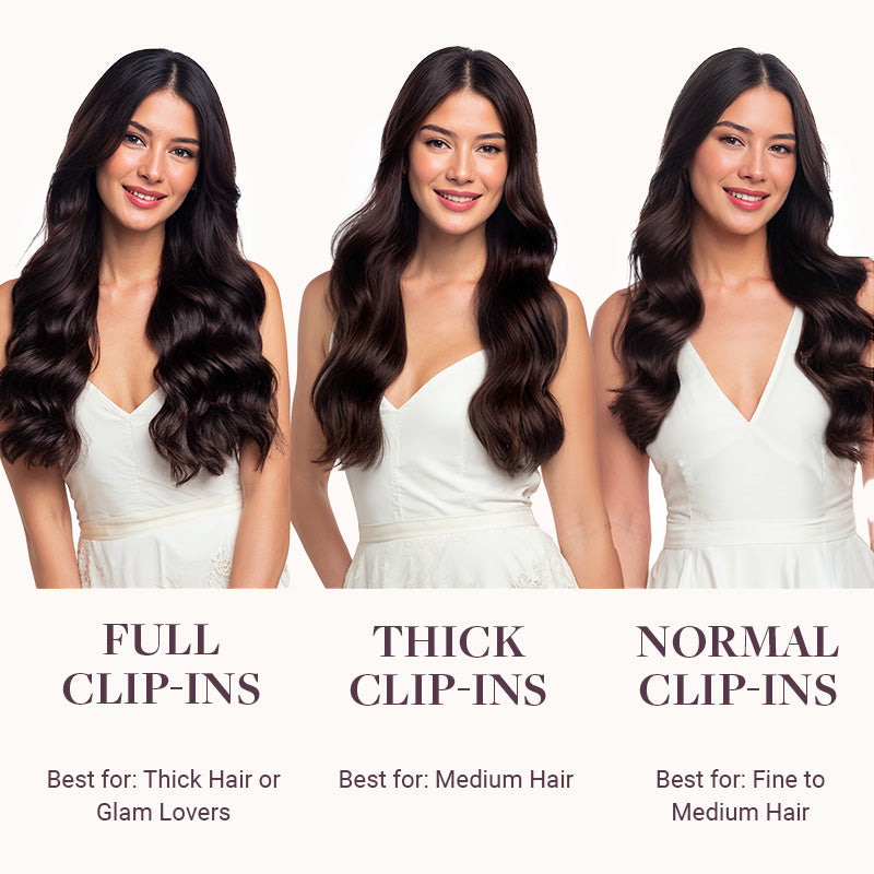 • Normal Clip-Ins: Our classic go-to for easy volume and length—ideal for most hair types and perfect for first-time users.