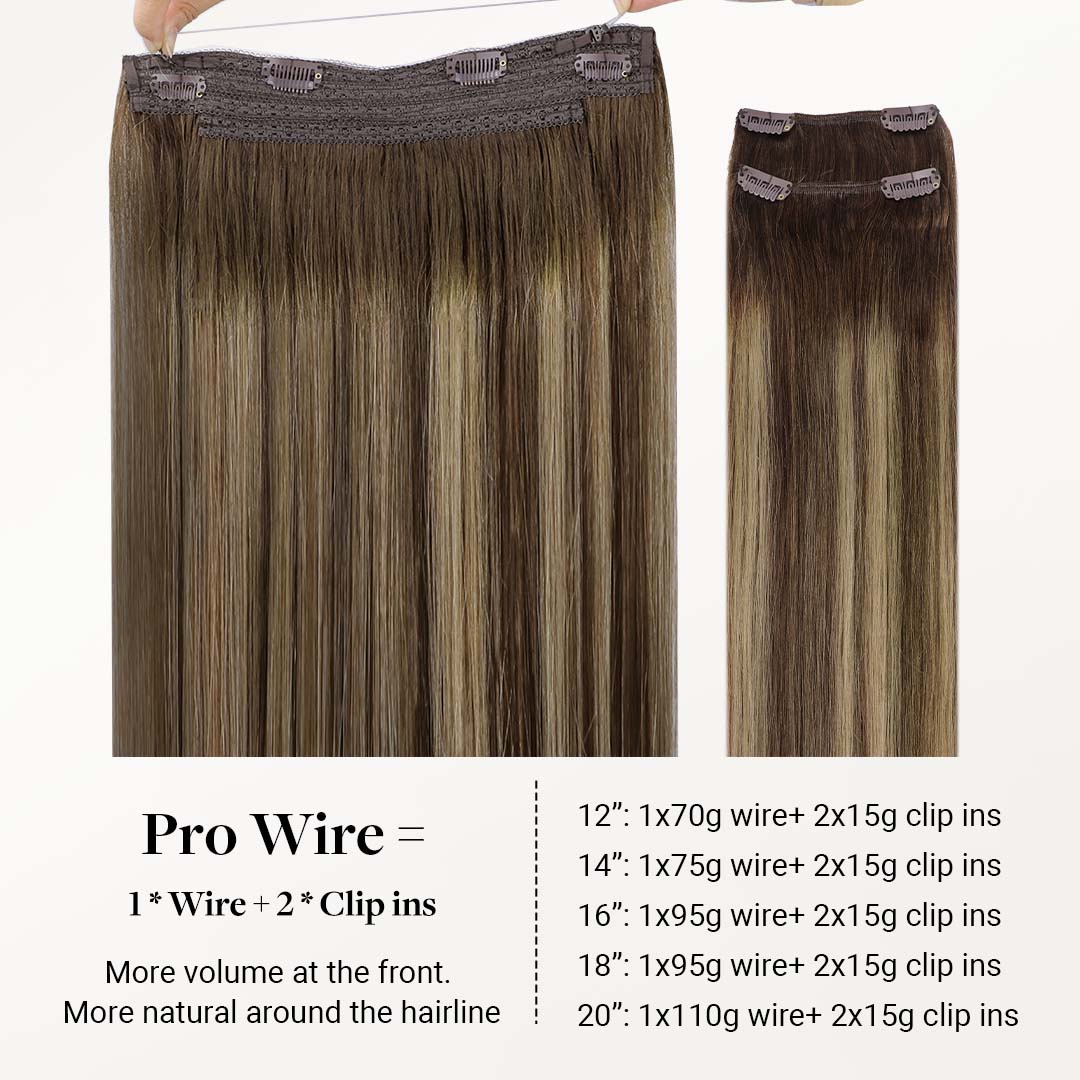 Pro Wire extensions deliver instant fullness and natural-looking volume, with extra clip-ins for seamless blending around your hairline—perfect for a flawless, versatile look without commitment.