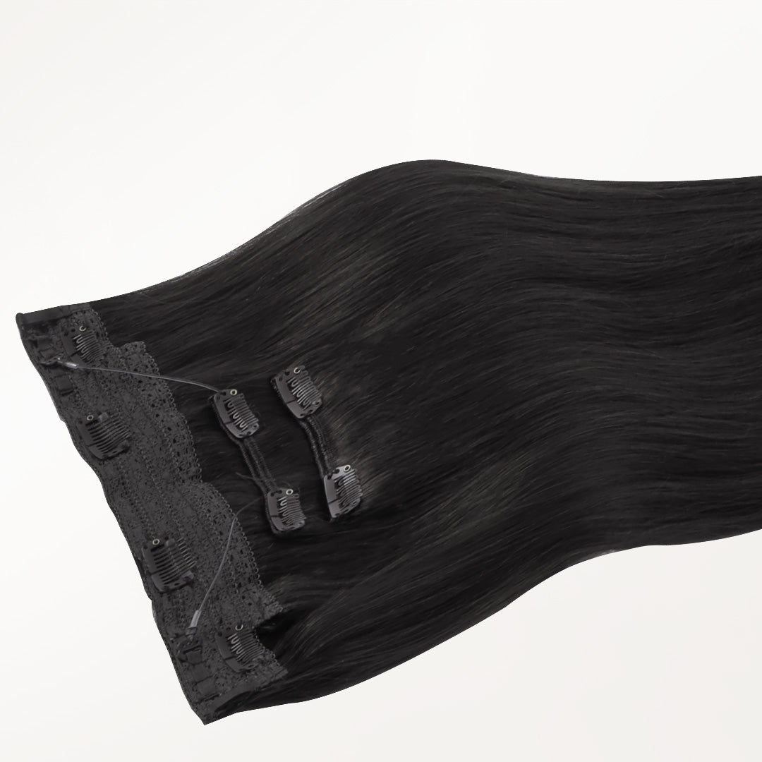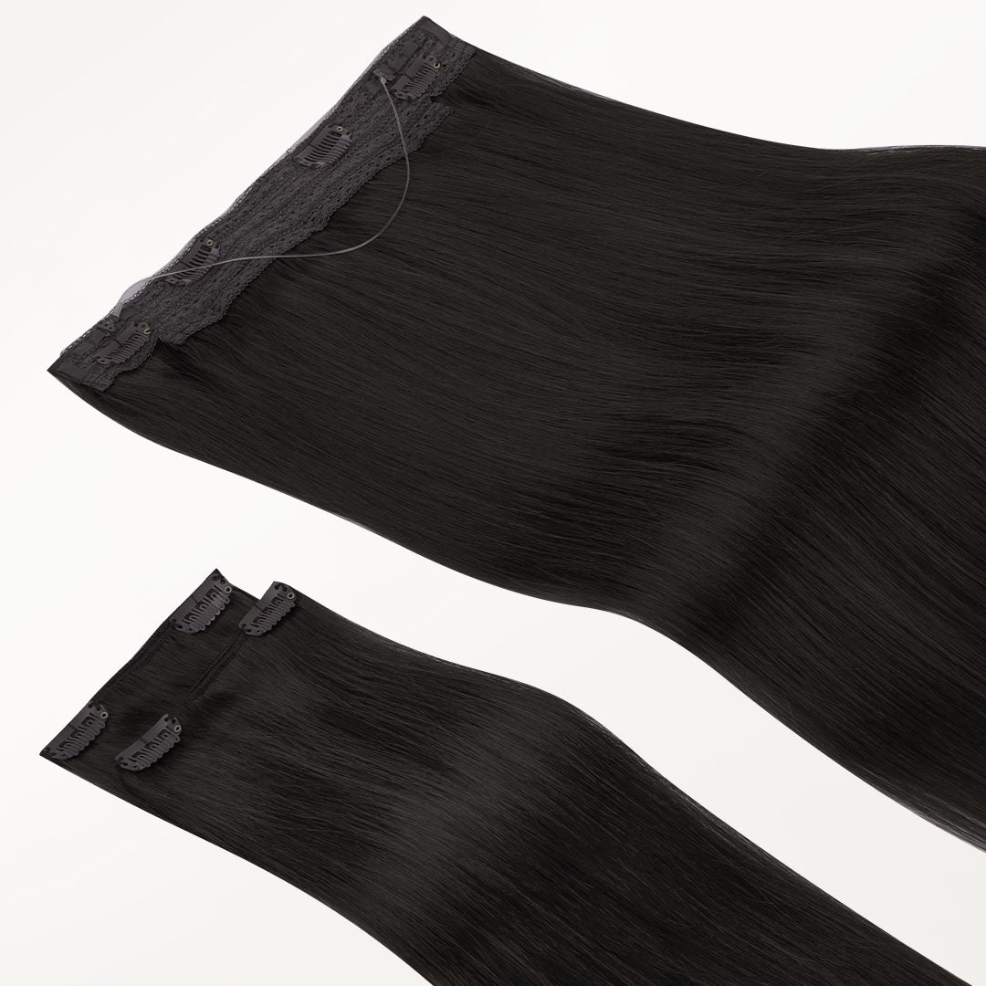 A single piece with an invisible wire. Super lightweight, no clips, easy to wear—perfect for beginners and fine hair.