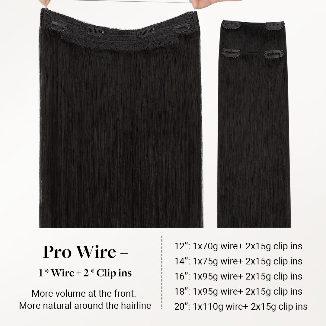 Pro Wire extensions deliver instant fullness and natural-looking volume, with extra clip-ins for seamless blending around your hairline—perfect for a flawless, versatile look without commitment.