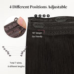 Our Wire Hair Extensions come with a default 9.64" elastic wire, which you can easily adjust by changing the position of the fishline hooks to fit your head.We also include 6 extra replacement wires—3 elastic and 3 non-elastic—for a custom fit: