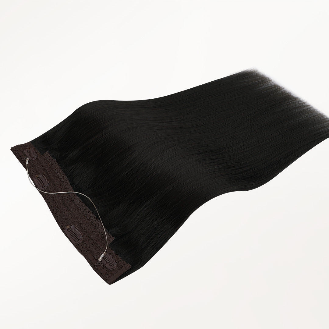 Yes, our Wire Hair Extensions offer the same over-the-head, no-clip application style often referred to as “halo” extensions. While we’re not affiliated with the trademarked brand, the wearing method is similar and just as easy to use.