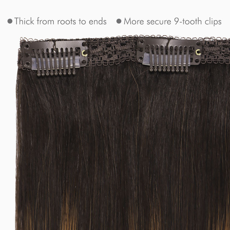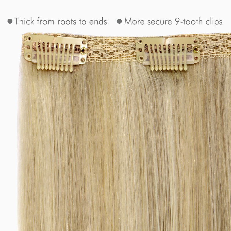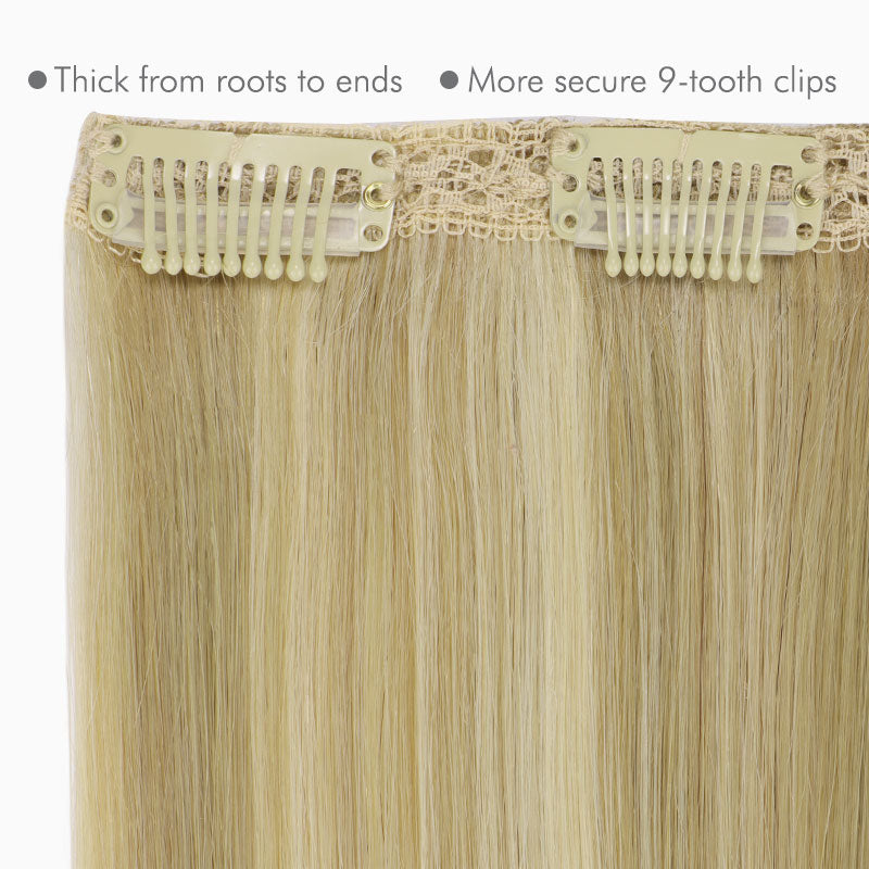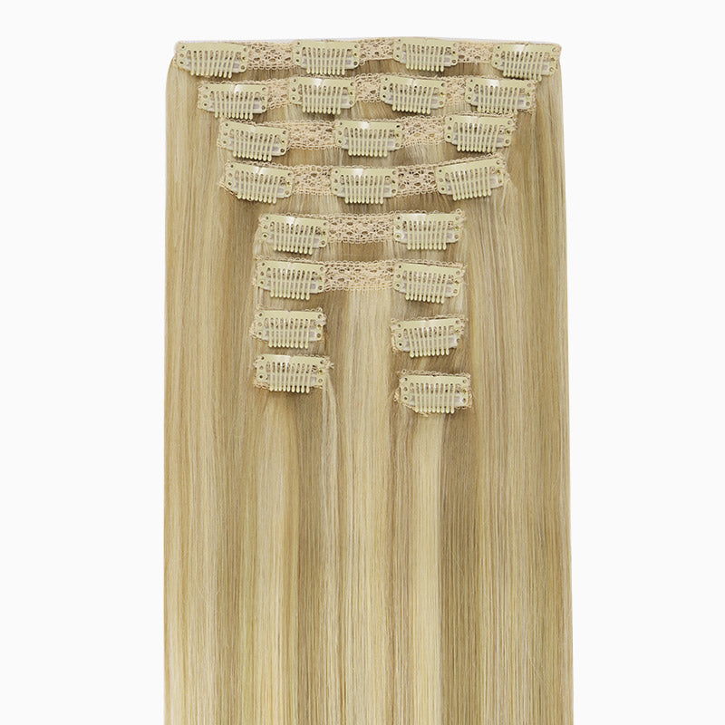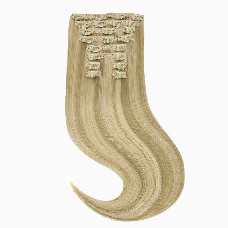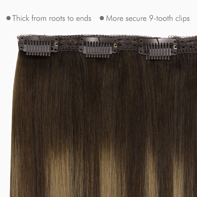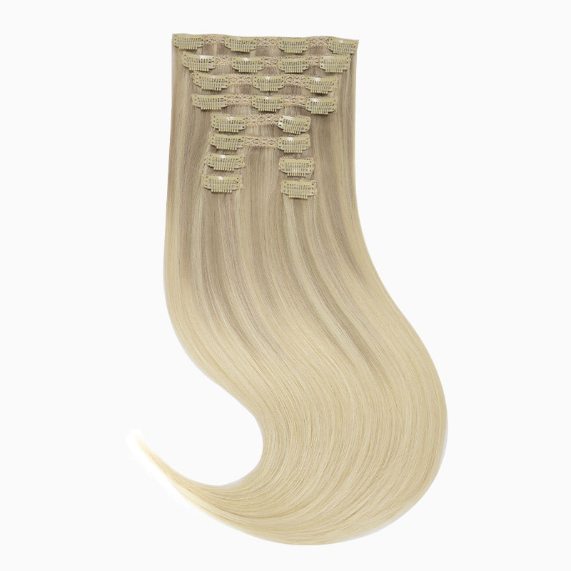 Compared to classic clip in hair extensions, our upgraded double drawn clip ins is fuller, softer, with more pieces and last longer.