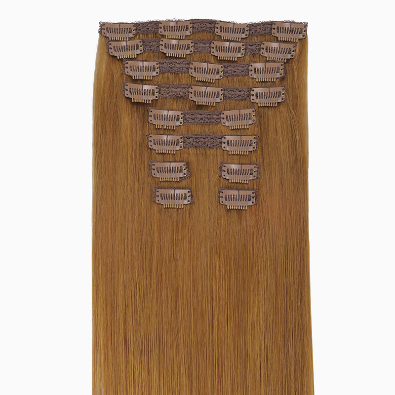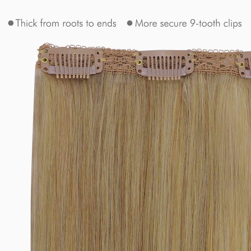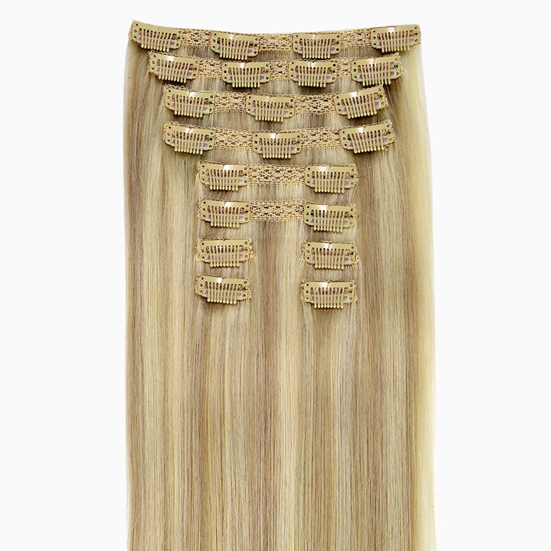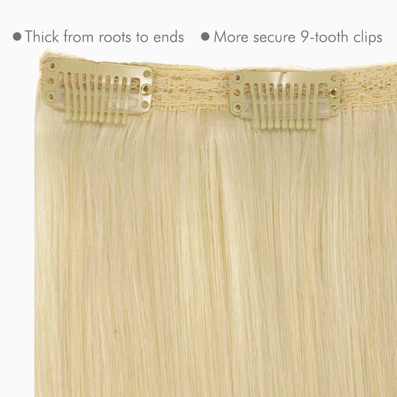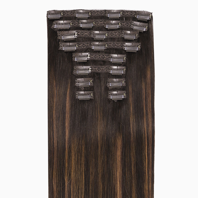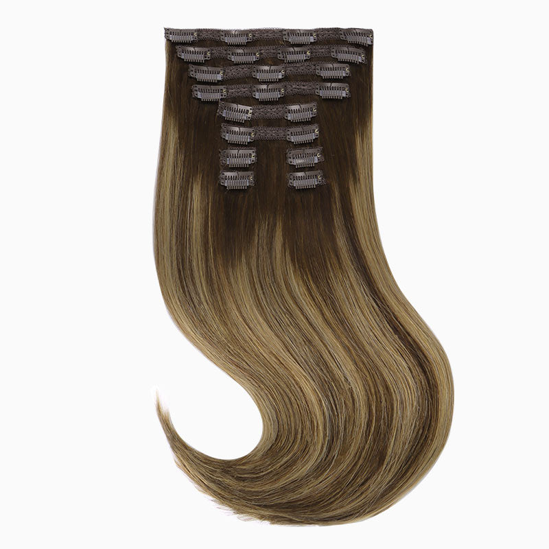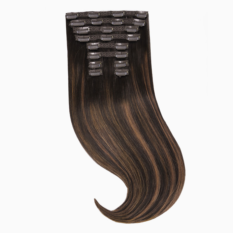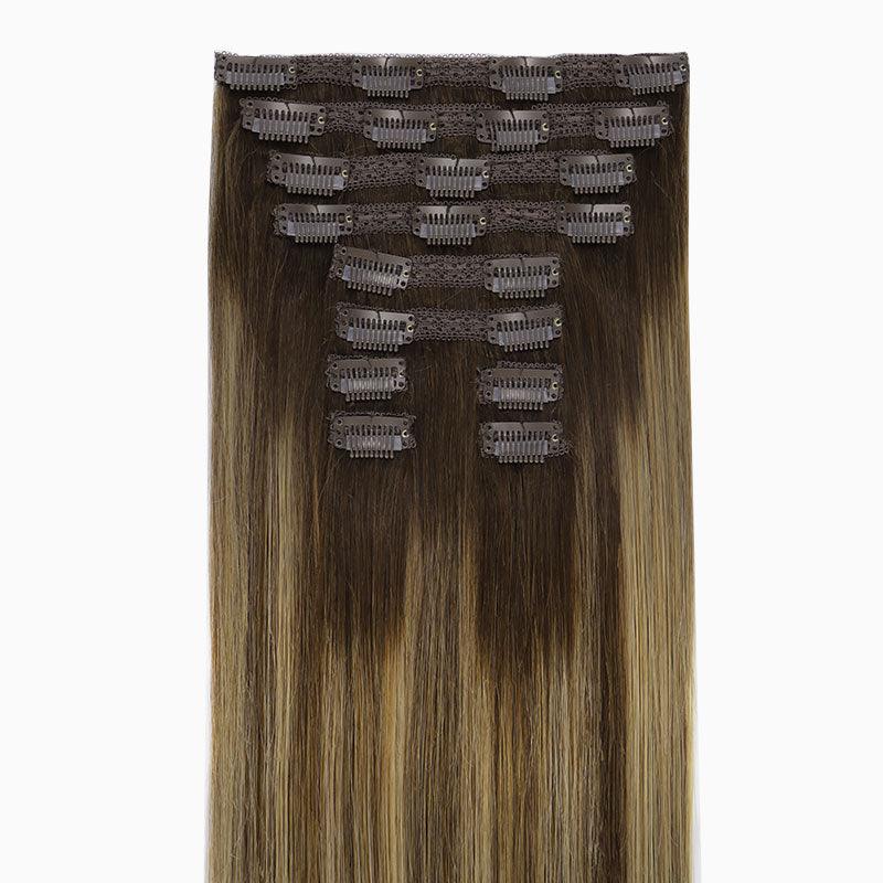 Compared to classic clip in hair extensions, our upgraded double drawn clip ins is fuller, softer, with more pieces and last longer.